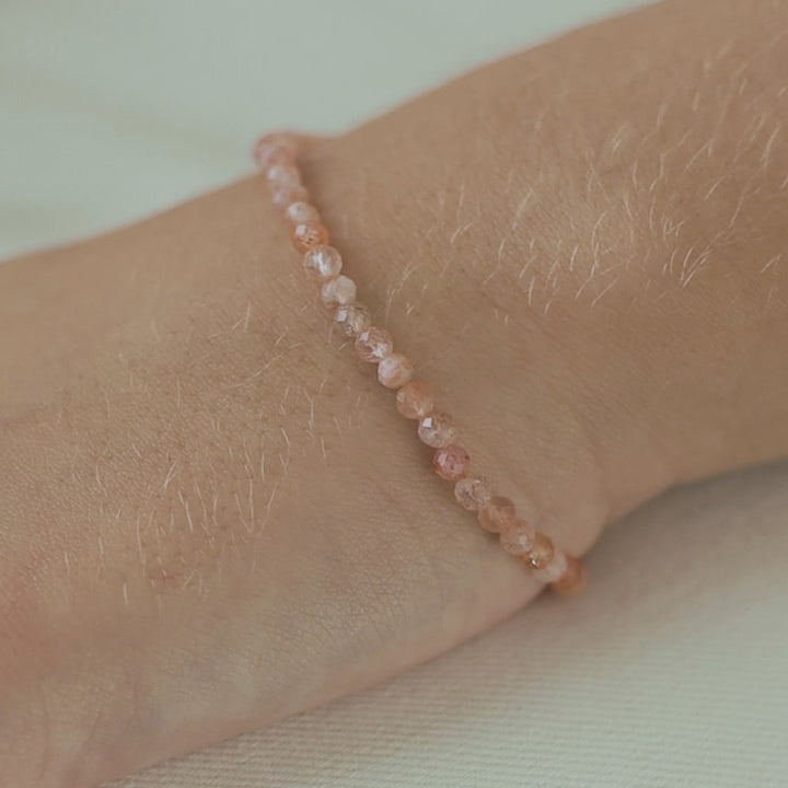Robyn Real Jewels Sunstone Stone Bracelet is a peachy orange color which connects us to the sun and reminds us to look at the positive side of life. Stack this bracelet with our other gold bracelets for a cute summer look.