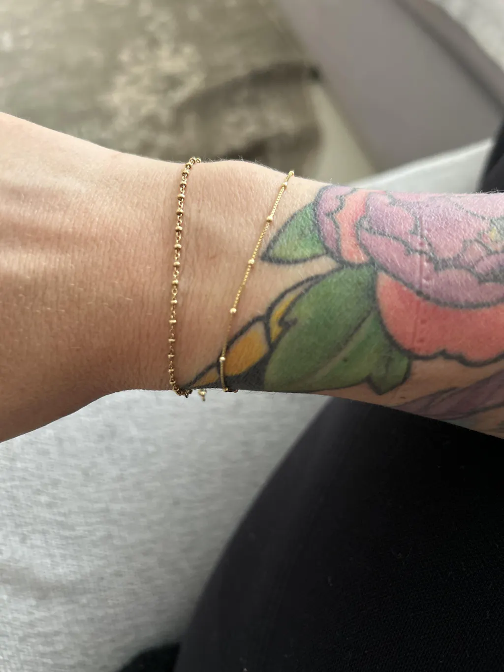 Robyn Real Jewels new and improved Waterproof and tarnish proof Modern Dotted Bracelet is a delicate, minimalistic bracelet that is polished to provide a lustrous shine for subtle attention and a classic companion to all of your other jewels.