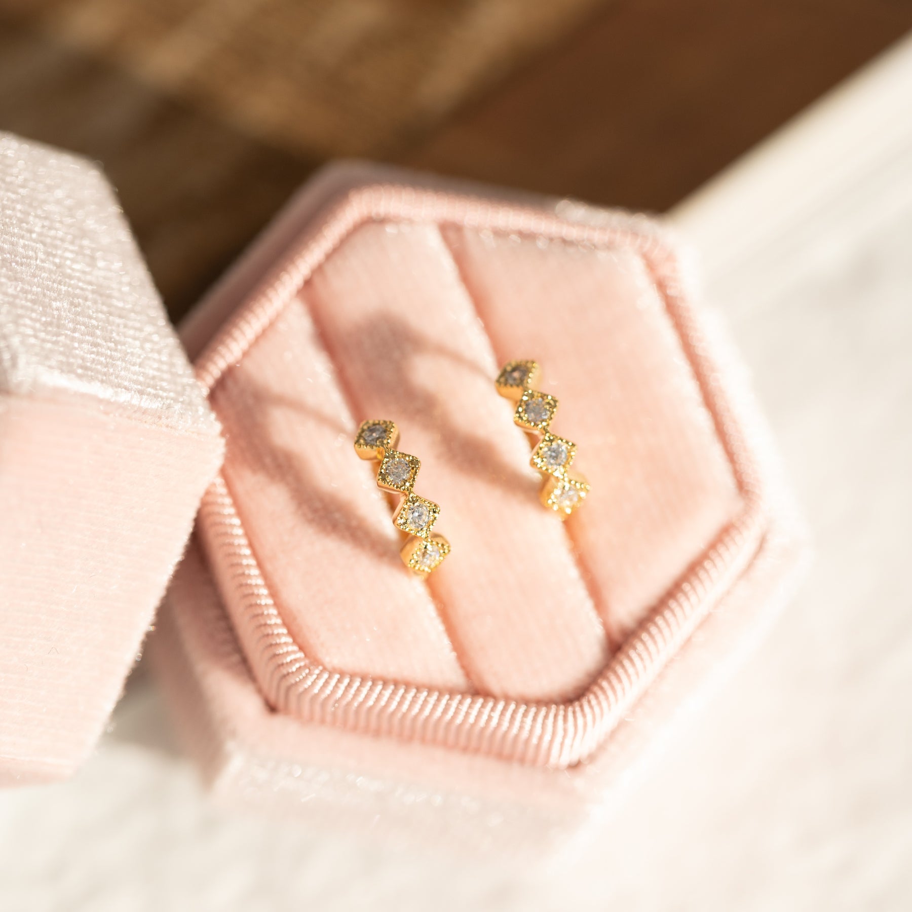 These classic pair of luna huggie earrings is set with cubic zirconia stones.