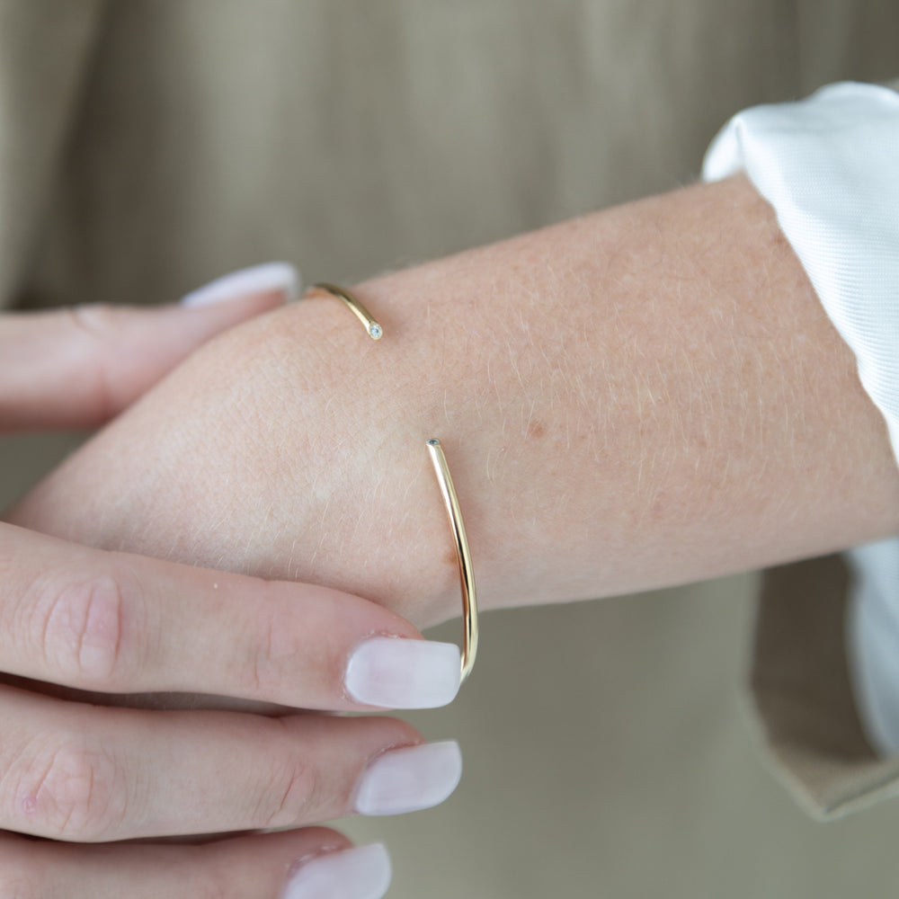 The elegant arm cuff with delegate cubic zirconia stone on the each tip of the cuffs as a perfect additional to your arm stack.