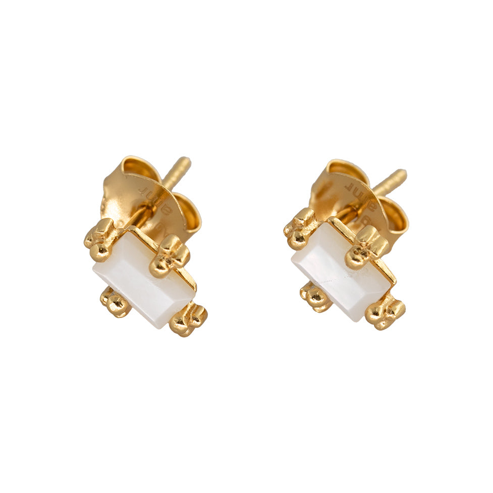 Organic stone stud earrings made with natural Mother of Pearl Stone earrings. Made from recycled silver 925 and 8kt gold plated. With anti-tarnish finish and hypoallergenic.