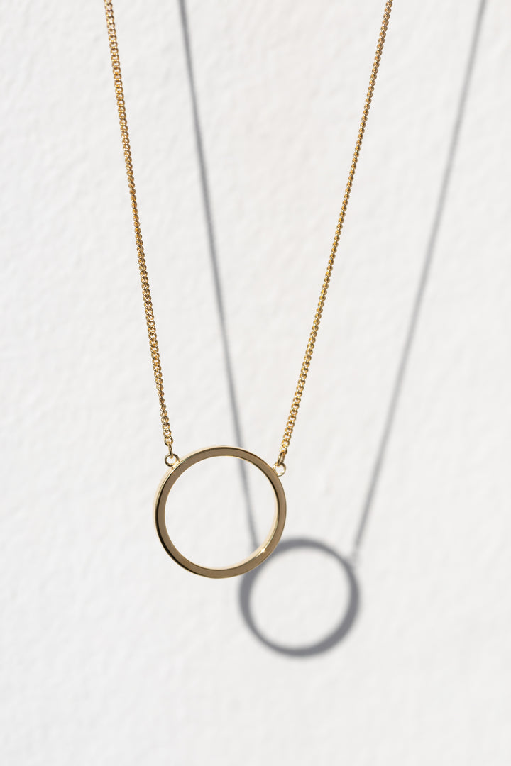 Robyn Real Jewels Hollow Disc Necklace available in 925 Sterling Silver or 18kt Gold Plating is an understated minimalistic style necklace with a hollow circular disc charm that appeals to those who believe less is more.